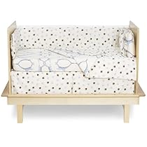 sw2100d Argington Review: I had purchased the spare fitted sheets and lumbar pillow that match this crib set so that I could see the colors and print and make sure I liked it before I put it on my Baby Registry. It's a lovely print - very graphic in effect and cute, but not tooooo cute. However, I was extremely disappointed when I received the full crib bedding set. The fitted sheet and pillow I bought had a crisp white background (perfect for my nursery's decor) but when I opened the ... Read more from amazon.com »