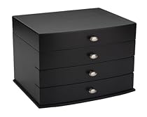 Buyer guide Reed & Barton Carrie Jewelry Chest Three spacious wells accommodate pins, bracelets and more, while the three ring bars offer ample room Beneath the lid's smart, protective magnetized flap are hooks and a catch shelf to store large pendants Two deep drawers accommodate earrings, bracelets and large pendants. Wood veneer over MDF, faux